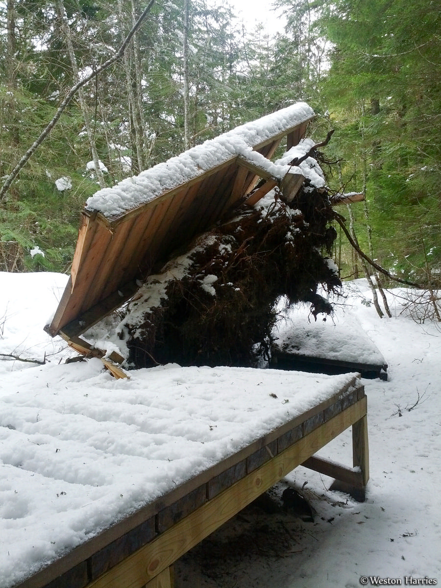 - Uprooted Tree Breaking the Trail of the Cedars Boardwalk in Winter, Glacier NP -