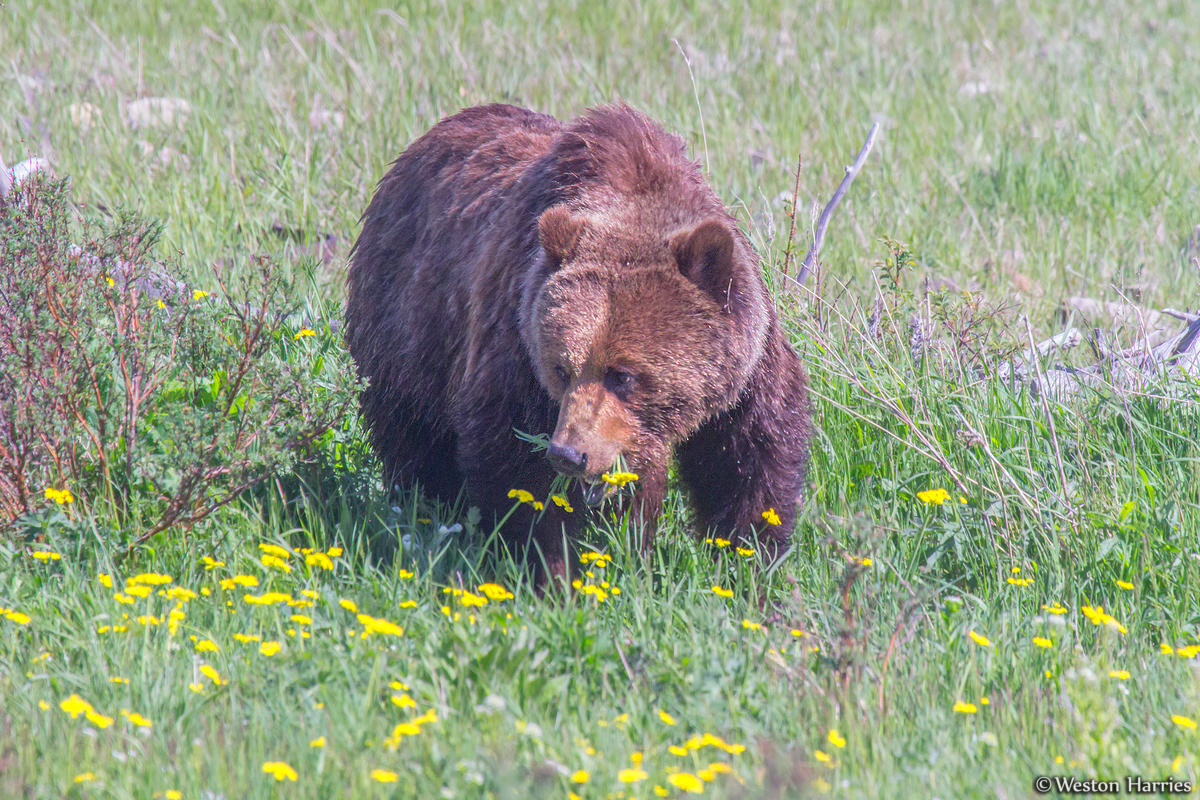 - Grizzly Bear Feeding on Wildflowers, Glacier NP -