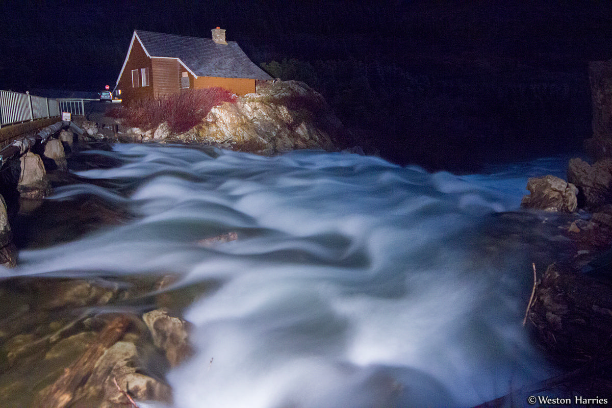- Swiftcurrent Creek and Cabin Under Moonlight, Glacier NP -