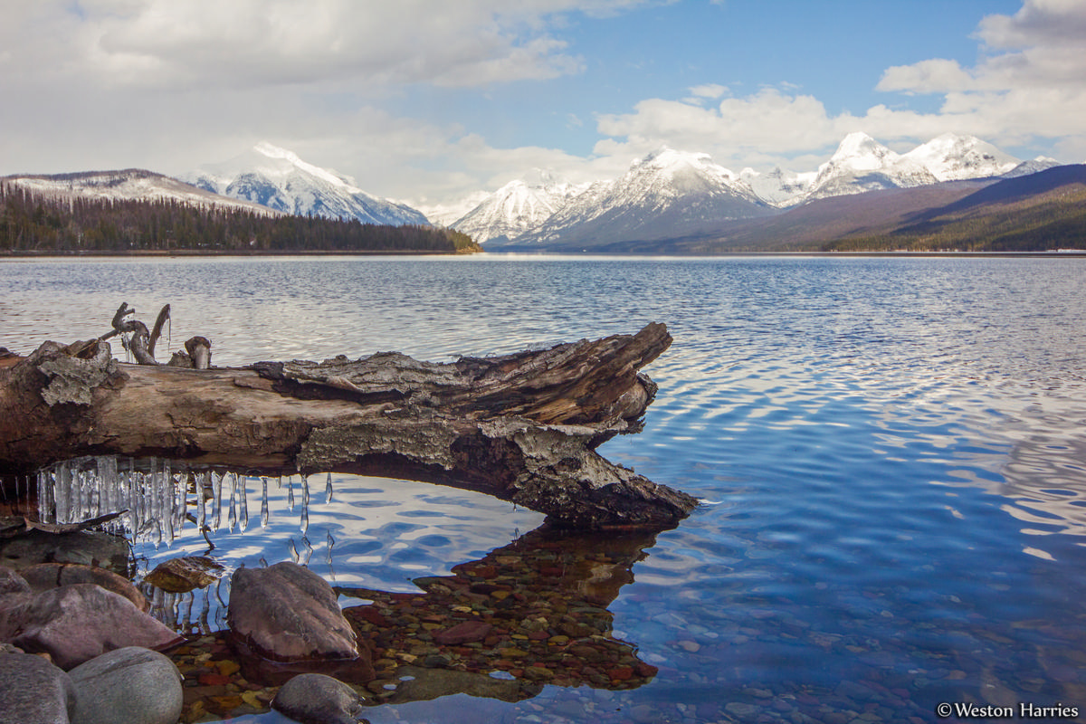 - Icicles Dripping off a Log on the Shore of Lake McDonald, Glacier NP -