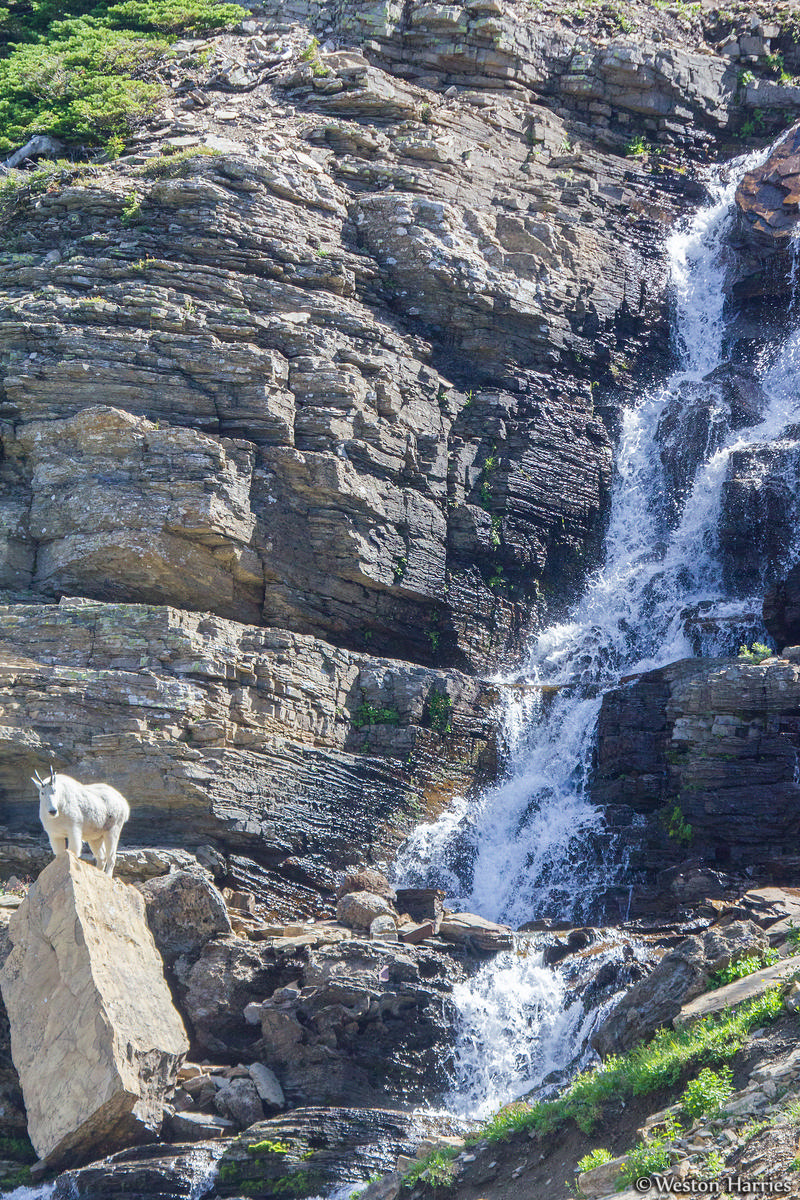 - Mountain Goat Perched Beside a Waterfall, Glacier NP -
