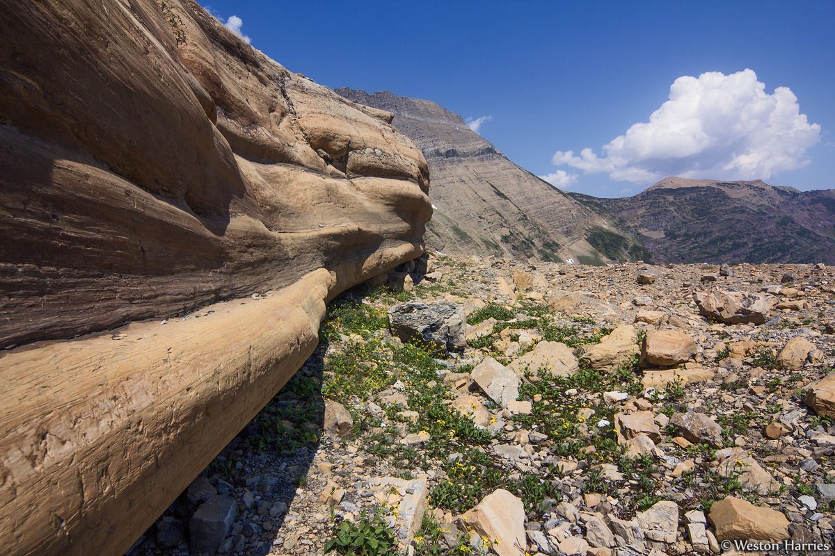 - Wildflowers Growing Below a Huge Cliff on Apikuni Mtn, Glacier NP -